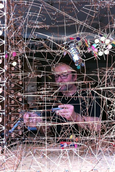 Alain Schartner, der kreative Schweizer aus Wettingen/Aargau hat seine Kugelbahnleidenschaft vor 10 Jahren zum Beruf gemacht. Er hat seinen eigenen Baustil von zunächst überwältigender Filigranität, die er im schrittweisen Bauen aus Kupferdrähten ohne Bauplan in einem Rahmen von oben nach unten schafft, wobei immer zuerst der automatische Lift erstellt wird. Ein kürzlich bei MIGROS erschienener Artikel gibt einen schönen Einblick in sein Werk.