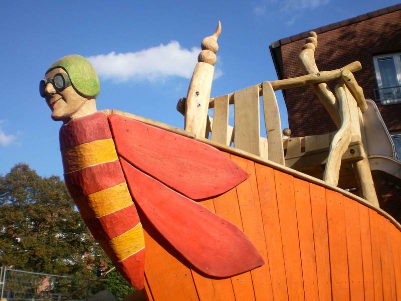 Für mich eine große Überraschung, denn es gehört zum künstlerisch besten, was ich im Spielgerätebereich und der Spielplatzgestaltung kenne und hier von Janne Margo König & Thor Sten Swertz (siehe Impressum) geschaffen wurde.