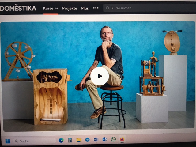 Der brasilianische Automatakünstler Eduardo Salzane bietet einen umfangreichen Kurs zum Bau von figürlichen Holzautomaten an. Auf der Webseite von DOMESTIKA sind die Details zum Kurs zu finden, einschließlich eines fast 3-min-Einführungsvideos: https://www.domestika.org/de/courses/3203-holzautomaten-erwecke-skulpturen-zum-leben?