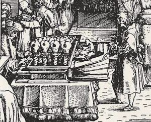 es ist ein orgelartiges Instrument, abgebildet auf einem über 500 Jahre alten Holzstich von Hans Weiditz anläßlich eines Konzertes für Kaiser Maximilian I.: