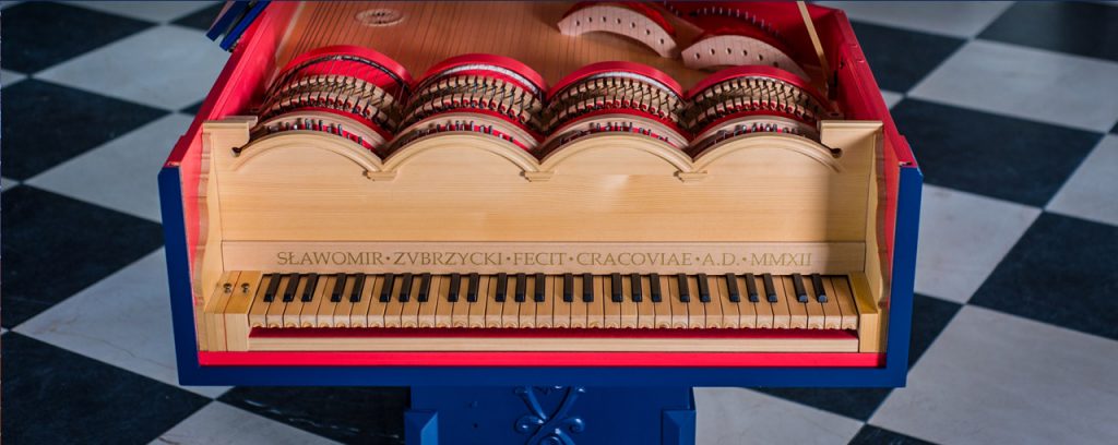 Hier nun eine Hörprobe auf einem modernen Nachbau dieses Instruments durch Slawomir Zubrzycki aus Krakau mit alter Musik, eine Weltpremiere: