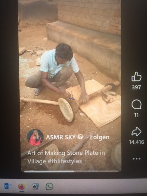 Bewundernswert mit welchem Geschick und welcher Genauigkeit der Handwerker den Teller-Rohling herstellt – direkt aus dem Steinbruch gewonnen. Und nun richtet er sich die Drehbank ein, die eine zweite Person über einen Riemen in Drehung versetzt. Hier das Video des Prozesses:    https://www.facebook.com/reel/920968270668977