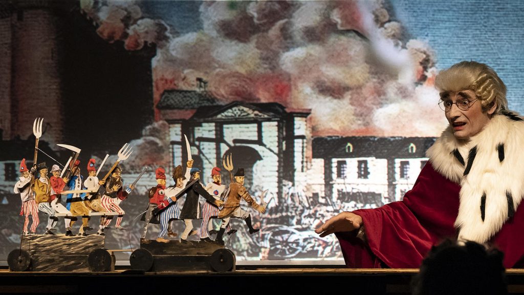Der namhafte Liedermacher und Kabarettist Rainald Grebe kehrt an die Anfänge seiner Karriere zurück , er ist nämlich ausgebildeter Puppenspieler. Und dies geschah im Puppentheater Halle vor über 20 Jahren. Sein neues Stück der „Weltmaschine“ dreht sich um das  Theatrum Mundi“, einer Theaterform, bei der mechanisierte Figuren über Schienen gezogen werden und durch Rollreibung in ihrem Mechanismus animiert werden.  Es wurde um 1700 von Johann Samuel Brede erfunden (hier Figuren aus dem Archiv der Desdner Puppenspielsammlung mit einem kurzen Abriß der Geschichte des Theatrum Mundi).  Der Berliner Bühnenbildner Joachim Damm (Hamster Damm) hatte diese Spielform in den 90ger Jahren erforscht und für sein Straßentheater wiederbelebt. Rainald Grebe interessierte sich ebenfalls dafür und man fand Hamster Damms Requisitenschatz nach so langen Jahren 2017 in einem Schiffscontainer wieder. Alles Weitere dazu wird anschaulich in dem Fünfeinhalb-Minuten Beitrag  in Artour MDR vom vergangenen Donnerstag berichtet.