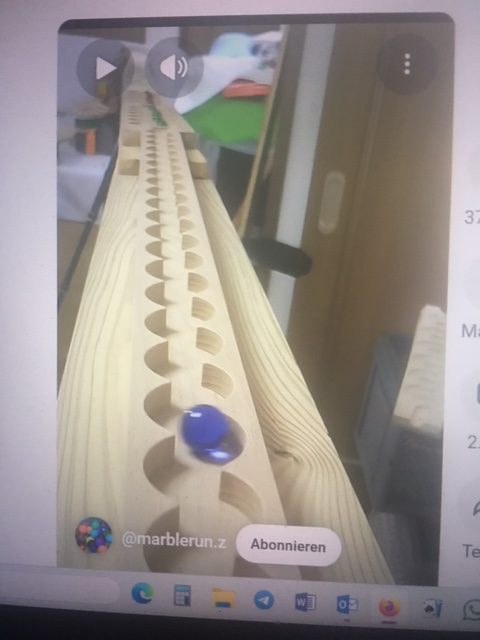 Der japanische Youtuber @marblerun.z spielte mit hunderten von Varianten an Kurzvideos, indem er HABA Holzbauteile in Serpentinenform zu langen Rampen verbaute mit entzückenden Effekten von Schlangenbildung der einzeln gestarteten Kugeln. Es gibt auch noch Plastikbauteile, oft in Trichterform, deren Herkunft jedoch nicht genannt wird.  https://www.youtube.com/shorts/gQ4eIsYn98k