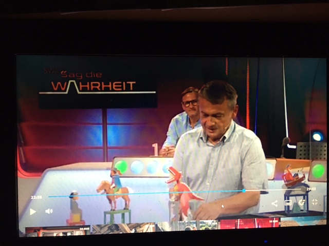 Vorgestern konnte man den Papiermaschinenkünstler in der TV-Show „Sag die Wahrheit“ vom SWR erleben. Das geht ab Minute 14.30 und bei Minute 22.27 bis 24.22 führt er einige seiner papiermechanischen Modelle vor. Walter Rufflers Webseite ist hier.